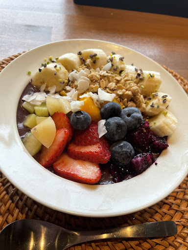客席にいたのは常連さんぽい男性ひとり、ノートパソコンを開いている。何も知らずにこの店に辿り着いたけど、メニューを見るとすごいこだわりのあるカフェだった。自家製の野菜を使ったととのいそば。グルテンフリーのスイーツ、沖縄初登場のスーパーフード使用のスムージーとか。
