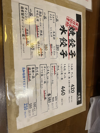 Read moreえっ?、えっえぅ… 有名店なのは知ってたが 系列になるのか⁉️ テレビでも見た気もする メディアやら当てにならないとは、思っているけど 現地の人が美味しいと思ってる???ご当地ものも 当てにならないな~と、思った1つ。確かに満席 少し待たされたりも有るけど みんな酒が入ってるからか?、長いだけなのかも。何せ、何一つ 旨いものが無かった…(笑)(笑) ビックリ よくこれで流行ってるな… 餃子は 焼き餃子がもともと 好きなのだけど ここのはコナコナしてる。具材を細切れにし過ぎなのだろかね、、食感も悪い悪い…水餃子も スープ餃子風なんだけど はぁ⤵️ため息。。ラーメンに至っては 食べない方がイイね。まぁラーメン屋では 無いから そこまで言うべきで無いけど、、アッ!チャーシューは美味しかったな。まだ。ポテサラやら概念がちゃうのが出てきたりするし、デカイ(笑)...