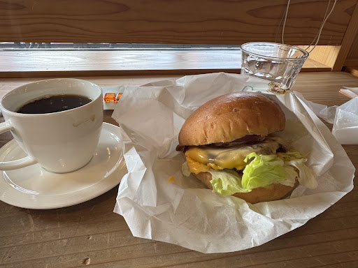 ツーリングの休憩で立ち寄りました。店内はオシャレで落ち着く雰囲気でした。せっかくカフェに来たので、コーヒー1杯と日曜日限定で鹿肉バーガーというのもあるらしく、そちらも頼んでみました。 コーヒーは普通に美味しかったです。ただ鹿肉バーガーの方は可もなく不可もなく、というか鹿肉ってこんなものなのかな?という感想でした。 勝手なイメージでもっと獣臭い、ワイルドな香りがするものかと思っていましたが、特に感じるものもなく、別にここでこれを食べる必要性はないかな、と感じました。 他の口コミではナポリタンが好評なので、今度伺った時に食...