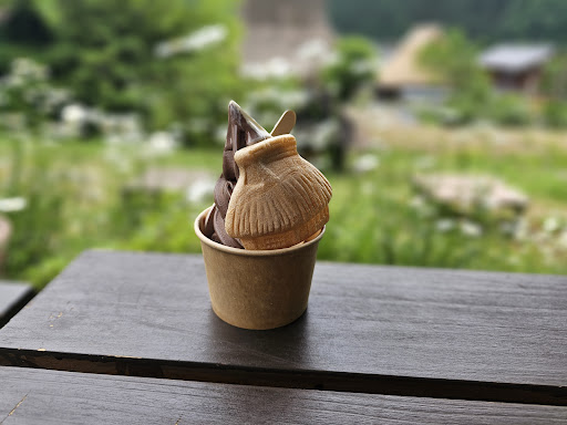 This is a cafe-gallery space, there is an area with locally made ceramics and pottery that you can view and buy. The cafe here have tatami seating and overlooks part of the village. It is quite atmospheric and the menu includes traditional sweets like dango and zensai. Their soft-serve ice cream is made...