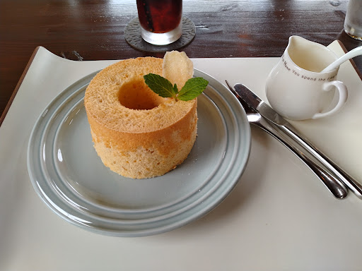 Read more店名のとおり、シフォンケーキがオススメのお店。(チーズケーキも美味しいですよ) 好みのコーヒーなので、ドリンクはコーヒー系をいつも頼みます。 シフォンケーキは、その時々で色んなものを用意されていて、お邪魔するのが楽しみ。どれも甲乙つけがたいのですが、今のところ『生姜のシフォンケーキ』がお気に入り。春先にお邪魔した時に初めて食べたのですが、生地の中に入ってる生姜の香りと食感がなんとも言えず😊 シフォンに付いてくる生クリームは、自分で好きなようにかけて食べる仕様。 先日は抹茶のシフォンケーキを食べましたが、トッピングのお豆も、生地の中のお豆も、それぞれいい感じに味を出してました👍 こちらのケーキは、どれも甘すぎないので、個人的に気に入っています。 月曜日と火曜日のみの営業ですので、なかなか行けませんが、また機会があれば立ち寄りたいお店です。