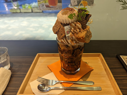 At the center was a crisp, art-like starch syrup, Whipped cream and ice cream underneath it are too luxurious✨