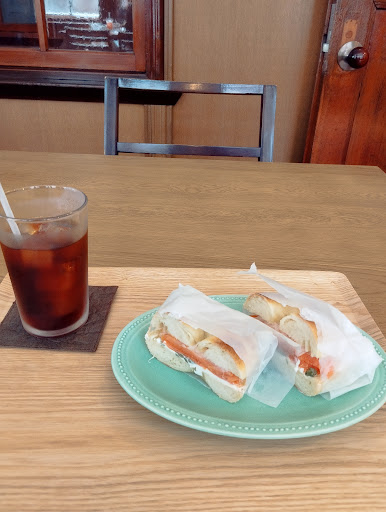 Read moreコーヒー無料券をもらったのと、ベーグルサンドイッチが美味しそうだったので行きました てりやきチキンと迷いましたがサーモンにひかれ、スモークサーモンとクリームチーズにしました ベーグルはサクッとモチッとしていてスモークサーモンとクリームチーズが合いとっても美味しかったです✨️ お値段は800円です いろんなベーグルがありお土産にチョコベーグルも頂きました(^^) 土足禁止でスリッパに履き替えなければならないですが、レトロで落ち着いたお店で、隣の部屋は図書室があり良い雰囲気です またベーグルサンドイ...