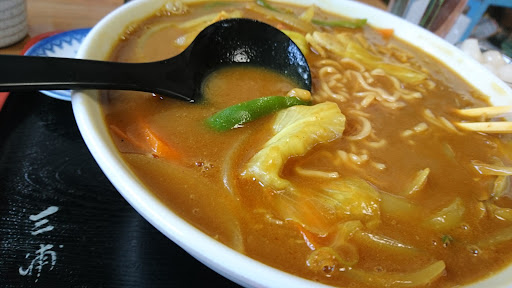 当時、仲間達と冬のイベントにてこちらに訪問!その時初めて食べたのがカレーラーメン🍜 「カレーラーメン❔」と言いたいところだが、これは旨いの一言🎵 食べる前に高級焼肉店等で用意される紙のエプロンを渡され何か来るのか感を期待させる⤴️