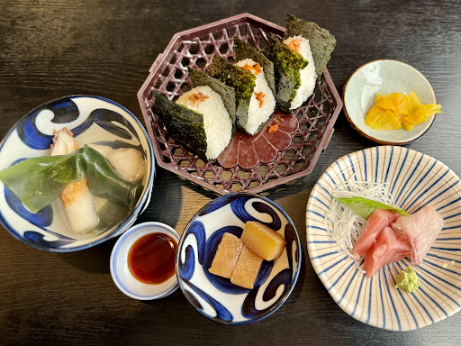 Read more山登りのついでに、山形のおにぎりを食べ歩いたが、こちらが1番美味しかった‼️ 型を使っているが、とても良いフワッと加減の握り、そして塩味も程よく、具との調和も凄く良かった😭 居酒屋とあるので心配したが、昼はバッチリ定食屋。しかし、居酒屋だけあって、付け合わせの刺身も美味しく、おでんも絶品で驚いた😋 おにぎり定食990円。入店すると注文票のみ渡される。手元のメニューは無いようなので、壁面を見る。おにぎり定食はカウンター1番左奥に貼ってある。システムが分からなかったら聞いてみよう。おにぎり定食は決まった具でおにぎり3つ。具を選ぶとおにぎりが2つに減る。筋子の場合は更に追加料金がかかる。かなりボリュームあるので、2個にして、好きな具を選ぶのも良いと思う。現金のみ。 駐車場は見る限り4ヶ所。店の前(厳密には横)、斜め前、道を挟んで横があった。遠くに目をやると同じ通りの結構先にも駐車場があった。混んでいたが、なんとか停められた。 道を挟んだ横の駐車場はよそのお店の駐車場と思われるすぺが隣接しているので注意⚠️(罰金的表示あり) 本当に美味しかった❗️最後に行ったこのお店のおかげで、大変良い気分に...