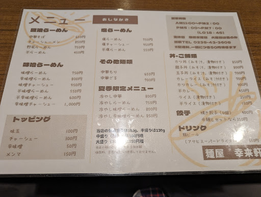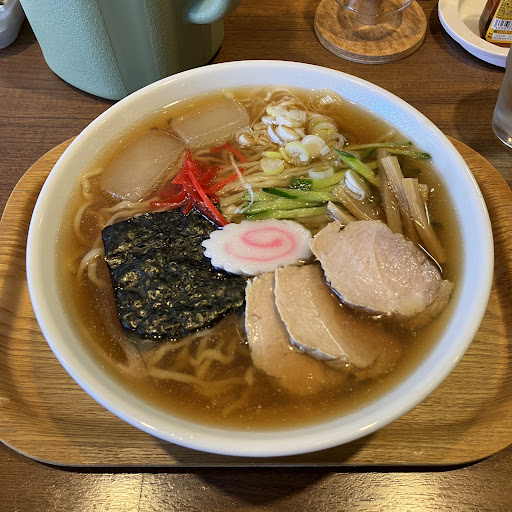Read more2025年4月 チャーシュー麺(限定バラ肉版)を頂きました。スープは最初はカツオ系のアタック(魚醤?)が浮かびベースは優しいお出汁と控えめな醤油ダレ。そこにお買い得すぎる厚切りバラチャーシューの優しい旨味で調和。満たされます。 食べすすめると次第に鮮度感のある野菜の風味(セロリも感じたかなあ)が感じられて当にモヤシキャベツ人参などのシャッキリ食感が沈んでる驚きです。優しいコンソメが底に隠れる二層式のダブルスープ。手間暇すごいです。 そこでまたバラチャーシューが活きてきます。コンソメに旨味を提供しつつも同時に野菜のおいしさを豊かに宿すチャーシューが。 とても美味しかったです☺️ ーーーーーーーーーーーーーーー 2023年 久しぶりに伺いました。以前と変わって煮干し・カツオ等の利いたスープでキリッとしたお味です。豚ガラタマネギ香味野菜のベースと控えめの醤油という喜多方系に高畠端麗煮干し系、モチモチシコシコの多加水中太麺という好みの...