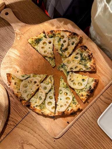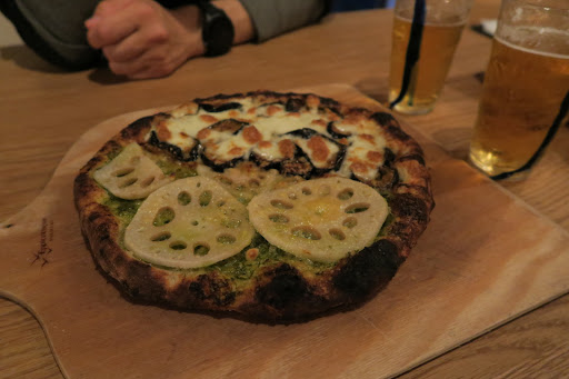 Read moreWe arrived on a rainy night after biking all day through Naoshima. The atmosphere was very nice, with cool music and a warm chimney. We ordered some beers and a pizza half with lotus and pesto, and the other half with miso eggplant. It blew our minds! Each combination was so unique and flavorful. We couldn't resist and had to order a second pizza, half with lotus pesto again and the other half with classic Margherita. I will never forget those pizzas. If I ever visit Naoshima again, I will come back for more...