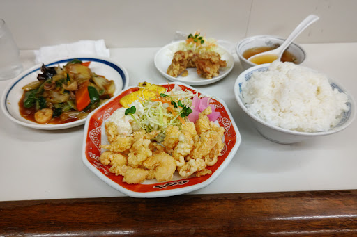 スタミナ丼(中)と唐揚げピリ辛甘酢たれかけ(中)4個を注文。スタミナ丼は、雰囲気が八宝菜が丼にかかっている感じですが、味は八宝菜のそれではなく、色も茶色がかっていて独特な味です。熱々で美味しいです。食べながら何の味かいな~と思って食っていましたが、結局近い味が何かわからず、「これはスタミナの味かなぁ~」と思いました。ニンニクとかも入っているのかもれませんが、特にニンニクのにおいはしませんでした。具は白菜などの野菜、お肉結構入っていますので楽しめます。食べてて美味しい味で、何人かレビューで評価されておりましたが、私も同意見でおすすめです。唐揚げはたれが美味しかったです。ピリ辛でしたが、私的にはそれほど辛いという感じはしませんでした。たれがかかっていますがお肉はカラッと揚がっていて、美味しい唐揚げです。二品しか食べていませんが、十分美味しい町中華のお店です。街の人に長く愛さ...