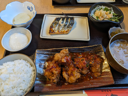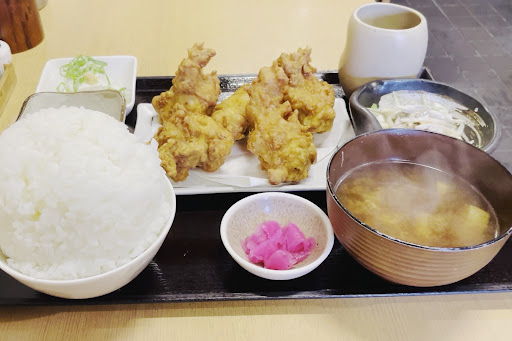 Read more近鉄学園前の駅近くは食事どころがあまりないのですが、唯一ビジネスランチにちょうど良いこちらのお店が、少し駅から住宅街の方に歩いて行った角にあるこちらのお店。 初めてお邪魔しましたが、なかなか。 今回は唐揚げ定食を注文しましたが、結構大きな唐揚げが5個。 そこに小鉢がついて700円。 それにライスのおかわり自由です。 が、おかわりの注文をするのが面倒なので、最初から大盛でとお願いしたら、まんが盛りでした。ライスマウンテンです。唐揚げもたくさんあったのですが、お代わりすることなく十分摂取できました。 いやー、すごいボリューム。 しかし、唐揚げを5個食べるのは途中で飽きてくるので何か味変アイテ...
