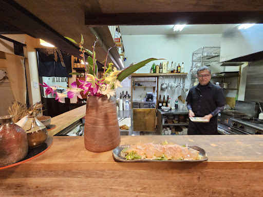 Read moreFantastic, quite large, Izakaya restaurant with a great atmosphere. Sit at traditional tables, sunken tables or the bar (with heated cushions in winter). The owner cooks delicious tempura (including vegetarian selection), steak slices, sashimi and side dishes. The sake selection is extensive as you would expect, but there is also a full wine fridge to choose from. Highly...