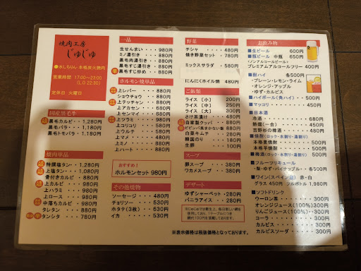 肉以外での自分のお勧めは卵スープですが、他の方と同じようなコメントをしても参考にならないので、ほかの特色(お任せコース)についてコメントをすることにいたします。 私はいつもお任せコースで注文をしています。お任せコースはこちらの予算を伝え、それに合わせていろいろなお肉を見繕ってもらえるというシステムですが、前は一人あたりいくらという予算を伝えればあとは完全にお任せというシステムだったのですが、先日行った際にはホルモンを含めるかまた肉は1人前ずつで良いかなど色々確認してきたので、最近は細かく希望を聞くスタイルに変えたのかもしれないです。ただ、お願いするとあとは食のペースに合わせてお勧めのお肉を次々に持ってきてもらえるシステムは変わっていませんので非常に重宝します。 私の場合は一人3000円でドリンク別のお任せに飲み物にキムチやスープなど付けトータルでほぼ毎回一人5000円ぐらいで終わる感じですが、 非常に満足度が高いので特に条件が無ければ焼肉に行くなら最近はじゅじゅ一択でお任せコースを頼む...