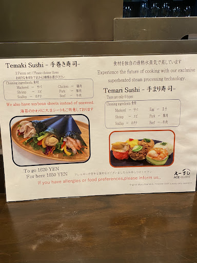 Read moreEven though we are English speaking tourists we felt welcomed and at home with Takuro’s hospitality in Ace Sushi. You can tell the care he puts into his cooking and making sure you are taken care of, for example thoughtful details such as offering a phone charger at the end of the night. He is very sociable and friendly and is happy to chat if you want to. If you're undecided like we were he will give recommendations and mixes delicious sauces to complement the sushi too.