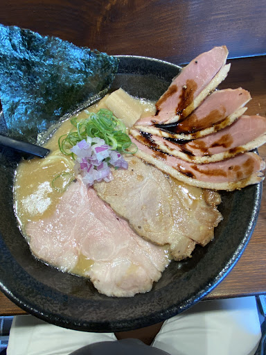(English below the Japanese) å¥è¯åžã®ã©ãŒã¡ã³å±ãå°å ã®äººæ°åºãããªãã空ããŠããã®ã§ã倧çãã®å€§åè±ãã°ãšçãè±äžŒïŒ200 gã®äžçãïŒã泚æããŸããã倧åè±ãã°ã®è±èã¯ããã©ã€ã ãªããæãèµ·ããããŸããïŒãã³ã¯è²ã®è²èª¿ãã»ãããšããããžã¥ãŒã·ãŒãªé£æãè±èã®å°ããªçãèã®äžã«æ°é®®ãªã¯ãªã¹ãã¹ã®éªã®ããã«èŒããŠããŸããã麺ã¯å°ã倪ãããã£ãããšãã飿ããããŸãããã¹ãŒãã¯æ¿åã§ãããèåãã®èµ€ãã£ããã¯ããããªã«å€ãã®èæçã«ãããŠãè²ãšé£æãéèã®åªããã¢ã¯ã»ã³ãã§ãããçãè±äžŒã¯ããµããµãã®çœãã飯ã®äžã«ä¹ã£ãå»ãã è±èã§ã岩谷ã®ãããŒããŒãã§çŠãããããšããŒãºããããã³ã°ãããŠããŸããæåŸãŸã§ããªããã£ã±ãã«ãªããŸãããã·ã§ãã¯éåžžã«ãã¬ã³ããªãŒã§ãæ¥æ¬èªã®èªåè²©å£²åžæ©ããã®æ³šæãæäŒã£ãŠãããŸããã圌ã¯äžäººã§åºãåãçãããŠãããå°å ã®ãç¥ãã«ãã©ãŒã¡ã³ã®å±å°ãšããŠåå ããŠããŸãã Nara City Ramen-ya popular with locals. I was hungry so I ordered the Yamato Buta Soba (倧åè±ãã°) with Oomori large serving of noodles, and Aburi Buta Don (çãè±äžŒ), 200 g äž size. The pork in the Yamato Buta Soba reminded me of prime rib: pink hue, falling apart, juicy texture. Healthy dose of pork fat globules glistened on top of the meat like fresh Christmas snow. Noodles were slightly thick and had nice chew. Broth was dense. Thinly sliced red cabbage was a welcome surprise in color, crunch, and vegetables in such a meat extravaganza. Aburi Buta Don was chopped pork on a bed of fluffy white rice, topped with mayonnaise charred with an Iwatani blowtorch. I finished stuffed. Chef was very friendly and assisted me with ordering from his Japanese-only vending ticket machine. He runs the entire operation by himself. He also participates in local festivities as a...
