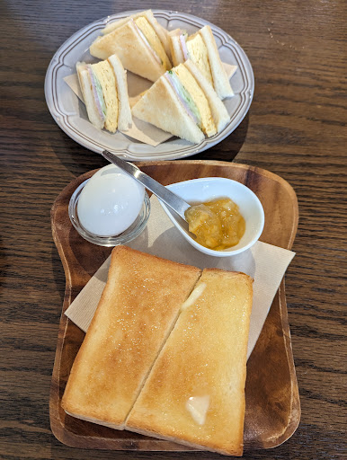 One of my best cafe experiences so far! Found this cafe after looking for breakfast in Nara. From 08-11 every drink order can also add toast and egg for free. I got the Vienna coffee with egg and toast. This also came with an orange marmelade which was very good with the fluffy toast. My significant other ordered the Strawberry Milk (tasted like a smoothie) and the assorted sandshich made into a toast. All of it was tasty.