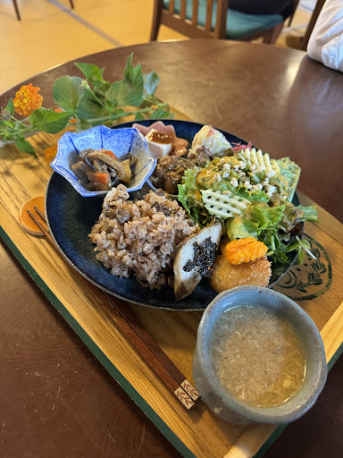 My son and I came for a late lunch here after visiting Nara park and temples. There was no one here and they were prepping for the evening but they invited us in and gave us the most delicious food I have eaten in Japan and in a serene setting, traditional house surrounded by green. There was only one dish available at this time - fish curry with fresh organic salad, pickles and home made fermented drink, delicious and beautifully presented, along with a flask of tea, for Yen1500. The menu has veggie options as well as meat and they also do bio-steam treatment with local herbs, what’s...