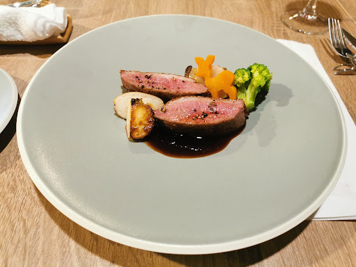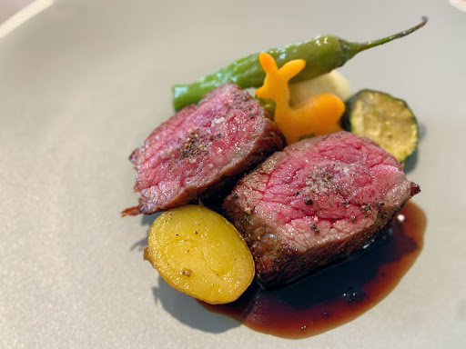 I had A-course (one main dish) 3500¥ and upgraded to wagyu rump steak with additional 660¥. The appetizers were impressive, espagot in pesto/ amberjack carpaccio with apple salad, then a bowl of hearty pumpkin soup. The main dish, wagyu steak, cooked perfectly, though rump steak is usually lean but wagyu gives it rich texture, not to mention the very cute deer deco made by carrot.