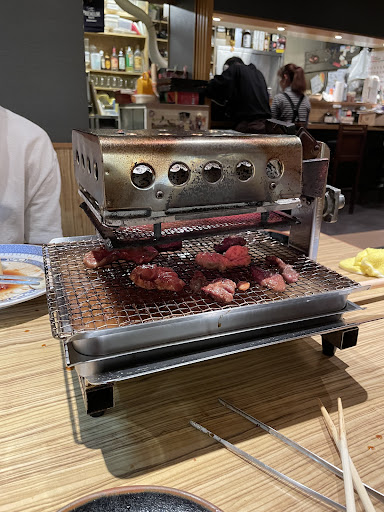 This is a very reasonably priced all you can eat yakiniku restaurant. There is no one drink minimum and you can stay for up to 3 hours. The all you can eat costs 2,700 yen. This price only covers the cost of the meat, however. Other items must be ordered separately at an ala carte price. The good news is that you are encouraged to bring in drinks, sauces, vegetables, desserts etc and consume those items there. There is a supermarket on the first floor of the building so if you buy vegetables to bbq, the owner will happily wash and cut them. The sign clearly states this and we witnessed the other customers doing this during our visit. This disruptive approach to dining out deserves far more more stars than I'm leaving for this review. I deducted stars for the following reasons: restaurant does not accept credit card, it took a while for the service to get rolling, inconsistent meat quality. First order took forever to come. I guess the owner is betting most customers cannot get past the initial order so better quality of meat was used for our first order (which was quite generous) than the subsequent orders. The more we ordered the less impressive quality of meat was presented..it wasn't bad, just it didn't compare to first order. Also the grills are a bit strange as they cook the meat from above, as opposed to traditional cooking methods of placing the meet over flame. This has it's benefits as there was no smoke and clothes did not stink at all. If the quality of the meat was consistent I would have given this restaurant an additional star. There is not a huge selection of seating but we were seated immediately at 6pm on Monday. When we left at 8pm there were some people waiting to get in despite other local restaurants not...