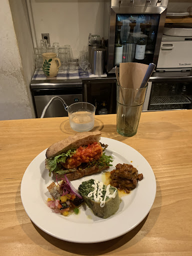 For 950 yen, I was served a delicate broccoli soup and the cooks prepared a special vegetarian plate for me. If you eat meat, you'll have two options for lunch. Soft jazz tunes play in the background while you eat.