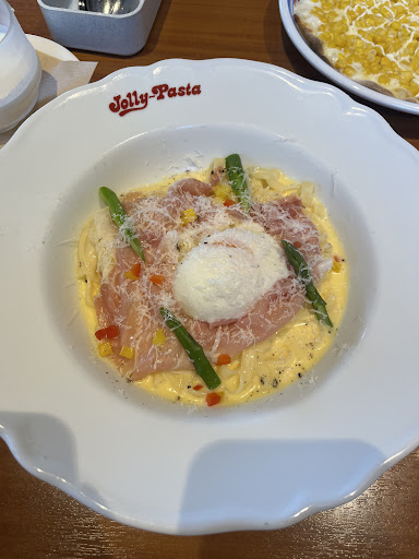Read more久々に利用してみましたがあくまでも私的感想です……内容も味も酷いものでした。 マルゲリータ🍕が御煎餅よりも薄く、チーズも乗っかってるか分からない程でした。 これならまだポテチのピザ味食べてる方が良いくらい。 パスタもこれという味がよく分からず、もしかしてパスタソース薄めてます?的な感じで大盛りをお願いしたのも過去の普通盛りの量。しかも、これまた味がぼやけすぎて……。食材高騰してるのは分かりますがちょっと酷すぎると思いました。簡単にササッと食事を済ませたい時の利用でさえもう食べに言ってここでお金を落とすのは馬鹿らしいです。チェーン店なのでどこのジョリーパスタでも同じ感じなのでしょうしね。あくまでも私の感覚なので美味しいとお思いの方には辛口...