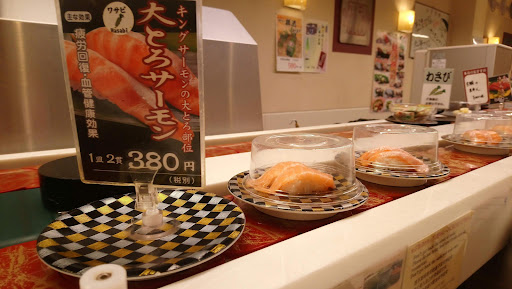 In general there are different levels of plates that are served on the sushi belt, cheap 100 yen to 500+ yen, everything depends on the quality of sushi offered. We tried a mixture of everything but the 300 yen sushi was absolutely delicious, making is pick more off the belt.