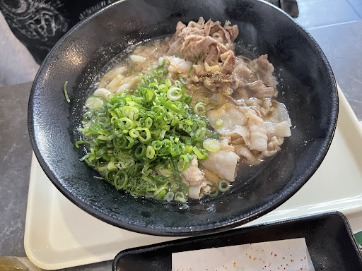 We ordered: Kasu broth udon + extra noodles + green onions + meat + pork shabu-shabu. Curry udon + pork cutlet Chicken karaage Edamame Two draft beers