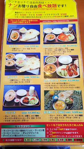 The food here is so good, and the servings are huge. Make sure you arrive hungry. The prices are also really cheap, great value for money. We got a curry with naan, a salad and a drink for 1500 yen each. They also have all you can eat and drink options. The service is great! The staff are really friendly and made us feel very welcome here as foreigners who can't speak Japanese. The (I assume) owner speaks fluent English and is very nice. At the end of our meal we got a voucher for 10% off our next visit which we definitely intend to use before...