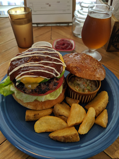 Read moreWe just had 2 burgers at Monks on the Moon and they were both delicius! We first tried to go to Sakura Burger (being it at the top of the ranking of restaurants in Nara, but it was crowded with a queue of 12 people ahead of us, both tourists and locals, so we searched in Google and decided to give Monks on the Moon a chance). Welcoming staff, clean place and classy music (jazz and rock). We went for a BBQ bacon & cheese burger and a burger with apple and pineapple, both served with some fries and a small cole salad. Well grilled buns and very tasty meat. Size was medium (enough for me), not big, for some reason the bacon & cheese one was slightly smaller. Free water. There are some draft beers to choose, but we didn't try them. As for the prize, we paid 2800¥ for both, wich seemed slighty more expensive than Sakura, about 200¥ more or so. There were only japanese people, but a lot of them seemed tourists from other parts of the country. Would...