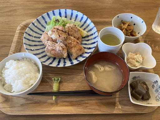 Read more塩唐揚げ定食をいただきました。 大ぶりなモモ肉5つ、満腹です。衣は米粉でしょうか、カリカリの表面が嬉しいです。味付けは決して濃くはありませんが、肉が良質で脂の甘みがあるので、敢えてスパイスに頼っていないのだと思いました。とても良い唐揚げです。 唐揚げの良質さは言わずもがな、小鉢がとても美味しかったです。定番小鉢に少しアイデアが入ったメニューで、食べれば丁寧に仕込まれたことが窺えます。あとは丁寧に出汁が引かれたお味噌汁とごはん、大変満足です。 今回はオーダーしませんでしたが、週替わり定食は季節の食材を中心に組まれている様子。ちょくちょくお邪魔したくなります。今回は時間がありませんでしたが、次はオーダーしてから焼くというサバ塩定食を...