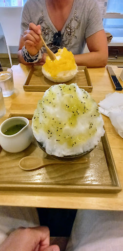 Chic modern cafe & dessert shop known for shaved ice with a choice of fruity syrup toppings.