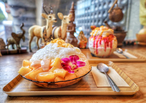 Read moreならまちの高畑町にあるタイ料理のお店RAHOTSUさん🇹🇭こちらではかき氷を通年いただくことができます。タイ料理のお店だけあり、ほとんどのかき氷のベースにココナッツミルクシロップ使われています。 【もも・杏仁】 ココナッツミルクシロップ 杏仁シロップ 杏仁豆腐 生もも(一個分) ココナッツチップ 【ドラゴン・タマリンド】 ココナッツミルクシロップ マンゴーシロップ ドラゴンライムシロップ タマリンドカード ライチのジャスミンシロップ漬け タマリンドクリーム まるでケーキを食べているようなかき氷。ボリューミーですが美味しいので一瞬でペロリといけちゃいます🥺🤍個人的にライチのジャスミンシロップ漬けが美味しくて感激しました。 空きがあれば予約なしでも入れますが基本的には事前予約制なのでご注意ください。 お店の駐車場はないですが近くにコインパーキングがあります♩