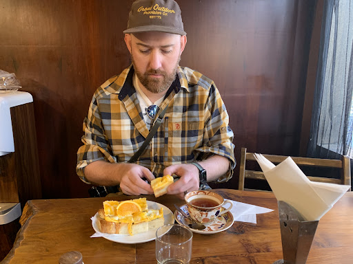 Husband and I went last week on our little day trip to Nara. When we stepped into the shop it was like we had gone back in time. Super cute and well decorated place, the man running the shop, an older gentleman, was super nice and ushered us in. We are both English speakers, so we couldnât read the menus, but the kind gentleman directed us to the coffee and egg toast open faced sandwich. It was a simple, yet excellent meal, and the perfect way to start our day. The egg sandwich had cucumber on it (not something we typically do in the states) and it was really yummy and refreshing. The coffee cups were beautiful, literal pieces of art, and we found ourselves bopping to the music which was a retro jazz track. Lovely experience, very lovely guy, 100% recommend paying him a visit if...