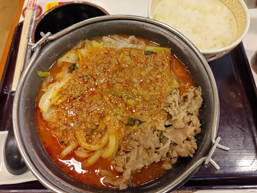 It's good that we can have Sukiya while we are traveling. Because we are tourists. We don't know much about this area. Sukiya has the standard taste. It is the same as when we eat...