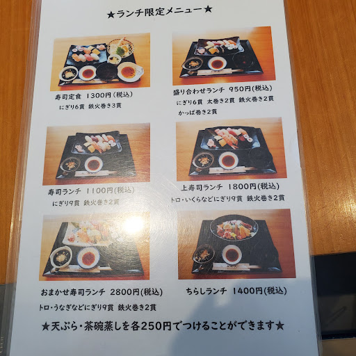 メニューはアテ系から寿司盛り合わせまで色々なラインナップ! 大人5人、子供2人で行って、アラカルトで。 ・上にぎり ・茶碗蒸し ・穴子あて ・トロたく巻 ・鯖フグ天ぷら ・天ぷら盛り合わせ ・海鮮太巻き ・上太巻き ・ホタテバター ・タラ白子ポン酢 ・ホタテバター などなど、色々オーダー。頼みすぎか笑 どの料理も本当に美味しい♫ お酒は生ビールはサントリー、瓶はキリンがあり、 日本酒は伯楽星、上喜元などをいただき、