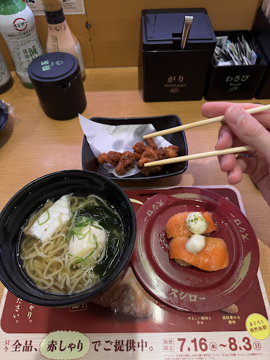 Read moreRead moreThe sushi 🍣 was served via conveyor after the order was made by using tablets. I like the quality of fish and other seafood e.g. sea urchins, octopus and clams. The price is reasonable. There are various types of sushi to be chosen in designated color of dishes (120 yen, 180 yen and special dishes with 300 yen). And there are many other foods such as udon, tempura and curry rice. The only negative thing about the restaurant is that the staff didn’t respond adequately to my questions and...