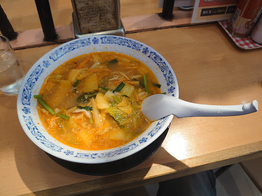 豚と白菜たっぷり入っていて ニンニクの効いたあっさりスープで辛みが後からきます! 辛いの苦手な私は汗だくで唇ヒリヒリさせながら食べました笑 もう少しパンチがほしかったのでニンニクを追加!! 大量投入!!完璧です!!最高!! これで、帰りのパワーは充電できました✨ (にんにくと豆板醤と手作りラー油はお願いすると冷蔵庫からもってきてもらえます。)