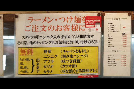 と言うか全てのラーメンに 野菜(もやし) 鰹節 タレ(カラメ) 背脂 ニンニクが入っていて
