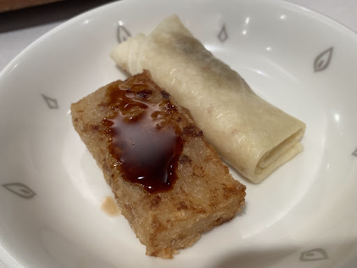 アミューズが北京ダックと大根餅というかなり豪華なアミューズですね。 ちょい厚めの生地の北京ダック。