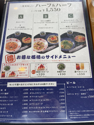 Read moreランチに行きました。パスタはそれほど高くなく、美味しかったのですが…。人が足りていないのか、出てくるのがとても遅いです。デザートも充実させているようで長居するお客さんが多く、もしも何組か待っていたら、待つ時間は相当長いと思った方がいいかと。店員さんの接客態度は悪くないです。おしぼりは出てきません。そこはケチらなくてもいいと思うのですが…。サイドメニューがほとんどないですが(パンすらありませんでした!)、パスタ自体ボリュームがあるので、結構お腹いっぱいになります。メニューに関して、パスタの味付けについての表記がないので、メニューは分かりにくいです(例えば、唐辛子を使っていて辛いのかどうかが一見してわからない。)。特に子どもに選ばせるのは難しいです。パスタは結構凝った物が多いので、さらに分かりにくさを助長していました。なお、お子様メニューは安くはないですが何種類かありました。ベビーチェアもありました。会計では、クレジットカードが使えないのは不便でした。 この店舗が…というわけではないのですが、パスタは美味し...