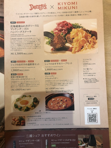 Read more4年ぶりくらいで久しぶりのデニーズでの食事でした。これまでのデニーズへの印象は割高感があるけども味はそこそこ良い‥‥です。今回はランチで利用し北海道産山ワサビソースとマッケンチーズのハンバーグステーキ+ミニライス+蜜いものちょこっとパルフェ計2134円の食事でした。いい値段するよね⁉これでハンバーグが普通レベルだったら怒りたくなるって!出てきたハンバーグが短冊状に細長くて唖然とした。ハンバーグの切り身の一つだろこれじゃー。いくらなんでも小さすぎでしょ。味はワサビが肉に上手に調和して美味いことには変わりない。実に密度の濃いハンバーグだ。ここまでクオリティ高くなくてもいいからもう少し大きいハンバーグにして用意してほしいですね。サラダがおいしくないので改良した方がいいです。変に酸っぱいだけでしょ。密いものパルフェはシリアルが多すぎでズルいです。もう少しアイス部分の量を増やしてほしい。接客サービス面ですが食後のデザートが遅くて呼び出さないともってこない感じです。今回は多少がっかりでしたね。昔のデニーズには☆4あげたいものの今のデニーズに☆...