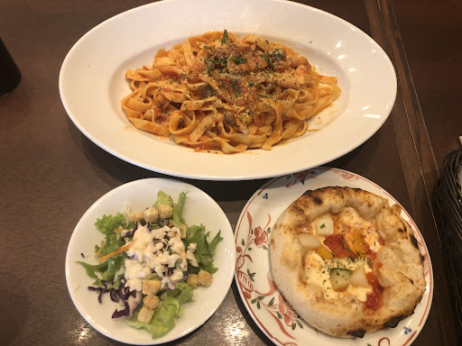 Read more今回は2回目の訪問で前回は「パスタは普通のスパゲッティ,量は通常」で注文して、分量が少なすぎに感じて「コスパの悪さ」を感じた。今回は「パスタをフィットチーネ(平打ち麺)、量は大盛(通常の倍の量)」で注文した。「サラダとパスタとピザ(彩り野菜とトマト…)のセット」でした。腹いっぱいになって量的には満足でした。問題の味ですが、「ナポリタン」を注文してやや後悔が残りますね。ウニを使ったパスタとかこだわりパスタの方が価格は高いけれども、ずっと美味しいですよね。せっかく鎌倉パスタを利用したら美味しいパスタを注文した方がいいです。大盛にしたので単価の安いナポリタンを注文してしまいました。それと平打ち麺のフィットチーネは腹持ちがいいけれども普通のスパゲッティの方が美味しいんですよね。サラダおいしさは普通であり、価格が高いと思うのだったら無理に注文しなくてもいいと思いました。ピザは石窯のピザですね。パスタに比べて評価は落ちますね。若干の期待外れかも。価格が価格だけにもう少しおいしくてもイイのでは?まだまだ研究したいお店ですね。次回はデザートなども注文したいと思います。イオン津田沼店は周りに美味しい店がたくさんあるからなのか、ここのショッピングモールが似合いますね。反対に飲食店街が貧弱なイオンモール船橋な...