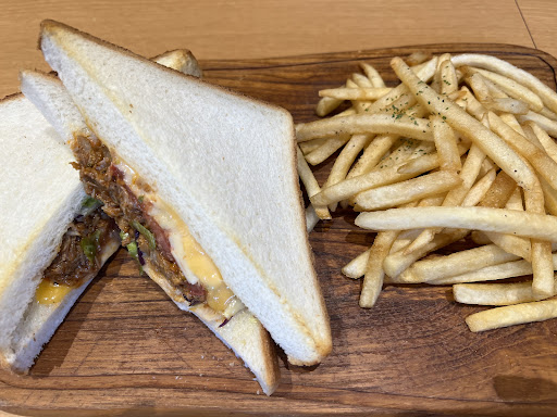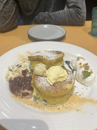 The address might say it's on 1F of the mall but the entrance faces the street so it's unnecessarily hard to find due to the weird shape of the mall building. The only perks of this place are spacious and comfy seats, opens late, and not crowded. Not bad if you have time to spare in this neighborhood like us, otherwise you can get much better pancakes at the same price (1,000-1,300 yen for 2...