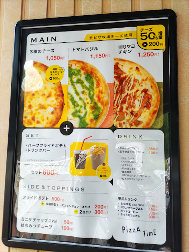 ピザ生地、チーズが美味しい。提供が早い。焼きたてを食べられるのがイイ。 ポテトはマックのMくらいの量、味は若干勝る。 小学生低学年以下なら二人でポテトドリンク付1セットをシェアで十分。 ドリンクの質も良し。 冷暖房の室内は席が不足気味だが、屋外にも座席あり。 お水、おしぼり、フォークなど完全セルフでカウンター内に居る店員さんは客席の様子にあまり関心がない。子供が水をこぼして台拭きを借りたいと申し出たが掃除もセルフ。お手伝いも無し…。