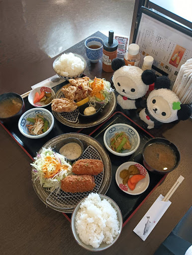 Read more開店前に着いて駐車場で少し待ちましたが店員の方がノボリと暖簾を出して店内に通してくれました😊☆入り口から奥にかけてカウンター席で細長い通路を抜けてテーブル席に通してもらい通路途中でマスターの挨拶が有り気分良かったです😉👍 席に着くと若い店員さんがお茶を出してくれて本日のオススメも出してくれました😊☆海鮮食堂でしたがお腹が空いててガッツリ行きたく揚げ物の唐揚げ定食大盛りとズワイガニカニクリームコロッケ定食大盛りを頼んだよ🤭大盛りご飯🍚は普通の1.5倍位で味も良かったな~🤩(笑)☆唐揚げは5個も有りお肉が柔らかくて美味しかった😆✨コロッケはフワフワトロトロで掴むと崩れてしまうくらい柔らかくて最高に美味しかった😋💕お味噌汁もごま油風味の付け合わせも美味しかったです😃🎶お腹が満足したので最後に定食の場合、コーヒー☕️が110円だったので頼んでお腹を落ち着かせました😁コーヒー☕️も自分には味も量も丁度よく大満足でした🤩店員さん同士も仲良さそうで雰囲気も和やかで良かった😌🎶お昼近くになると続々お客さんが来るので混む前に行ければ理想ですね😅お店の雰囲気が良いので場所が市場の付近で目立たないので穴場ですが美味しいので通りに面したらもっと...