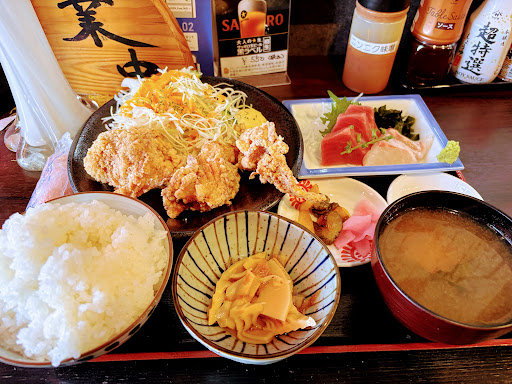 平日の12時頃、1人ランチで利用しました。 ■注文内容 〇鳥の唐揚げとチョイ刺身定食 税込み1490円 ■感想 ・旧成田市場の敷地内にあるお店です。店の目の前の駐車場は満車だったので市場の空いてる駐車場に駐車して店内へ。 平日なのに店内は、ほぼ満席。中年の方から高齢の方が多い感じ。カウンターが1席空いていたので待つことなく座れました。 ○注文 ランチメニューはないのか、だいたい1500円以上といった感じ。平日ランチにしては若干高め。注文したのは唐揚げとチョイ刺身定食。値段は、1490円。ご飯大盛り無料。 唐揚げ定食が一番お安く1100円。 ○食事 運ばれてきた食事は、唐揚げ3個、キャベツのサラダ。マグロの刺身3切れ、鯛2切れ、あら汁、小鉢に筍の煮物。 マグロは若干水っぽくて少し残念。鯛は生で厚めに切ってあり美味しい。 唐揚げは、3つ。とても大きく、サクッとして中は柔らかくて熱々。味が滲み出てジューシーで美味い。ご飯が進む。箸休めの筍の煮物もうまい。柔らかくて味が染みている。あら汁はあらが二切れのみ。若干味は薄め。野菜も少し入っていたら嬉しい。キャベツのサラダもみずみずしい。お店の人もみんな優しい感じで丁寧な感じ。料理もとても美味しかったです。満足しました。 ○店内 カウンター6席くらいに、4人掛けテーブル4席くらい。 店内は広くはないので子連れにはあまり向いていないかも。 次はアジフ...