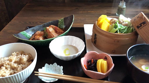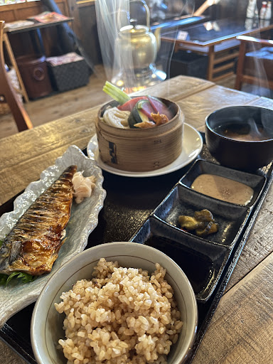 お料理が来るまで、窓の外を見たり、ネットを見たりして時間を過ごしました あまり待たずに、お料理が運ばれてきて 温野菜の蒸籠の湯気に感動いたしました! お肉も玄米ご飯もお味噌汁も どれも優しい味で とってもおいしかったです!