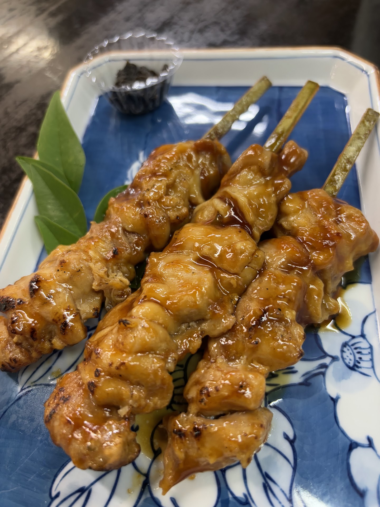 yakitori, grilled chicken served with togarashi: a piquant, complex spice-blend