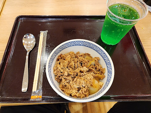 Read moreMy plane was boarding in 20 minutes, and I was feeling a bit famished. I ordered a small beef bowl and melon soda. The food came out promptly, and the rest of the experience was self-service. You get your utensils yourself, make your hot drinks yourself, and return the tray back to the kitchen yourself.