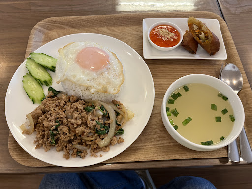 Read more店内は、奥行きがあり、広いです。 ランチメニューから、ガパオムーカイダオセット(¥1,200)をいただきました。 豚肉とバジルの炒め物と目玉焼き白飯に乗せたものと揚げ春巻きのセットです。 パリパリの上げ春巻きはスイートチリにつけて…美味。 ガパオも辛さは案外大丈夫でした。 独特の香辛料、調味料での味付けでしたが、食べるにつれて慣れてきます。 ボリュームはけっこうあると思います。 カオマン...