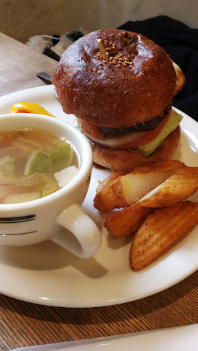 Read moreReasonable burger place with a good range and quite healthy options. I had a pumpkin and renkon with mozzarella burger. The basic set (free) comes with salad, fresh cut chips and a few pickles. Drinks are extra. The burgers are around 1000-1500 each. If you get the burger by itself, there is a slight discount....