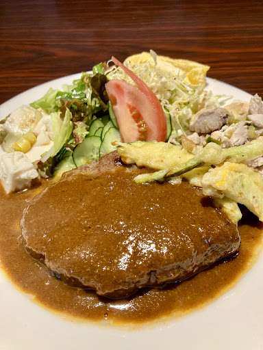 Read more初めて伺いました。洋食はいろいろ行ってますが、コチラはとても美味しく、店内の雰囲気も良かった。 日替わりランチ注文、ひとくちチキンカツ・ビーフカツでしたが、サラダ、味噌汁、ご飯がついてますが、男性用は少し大盛り気味でサーブしてくれるので、満足感があります。妻と行きましたが、女性用は普通盛りでした。ビーフカツは臭みも無くとても美味しく食べやすかったです。ご飯とよく合いました。サラダは野菜がたっぷり入っていて、ヘルシーでした。老夫婦で切り盛りされてますが、水のおかわりも何度もしてくださいました。店内にはギターが飾ってあり、年季が入ってます...